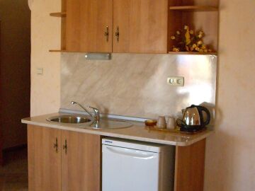 Всички стаи са оборудвани с климатик, телевизор, хладилник, гардероб и кухненски бокс. Всяка стая е със самостоятелна баня и просторна тераса.