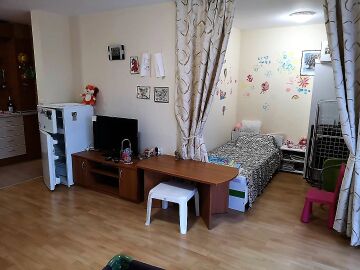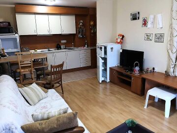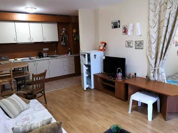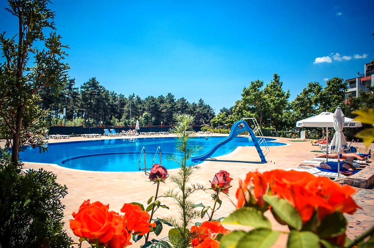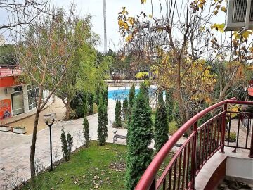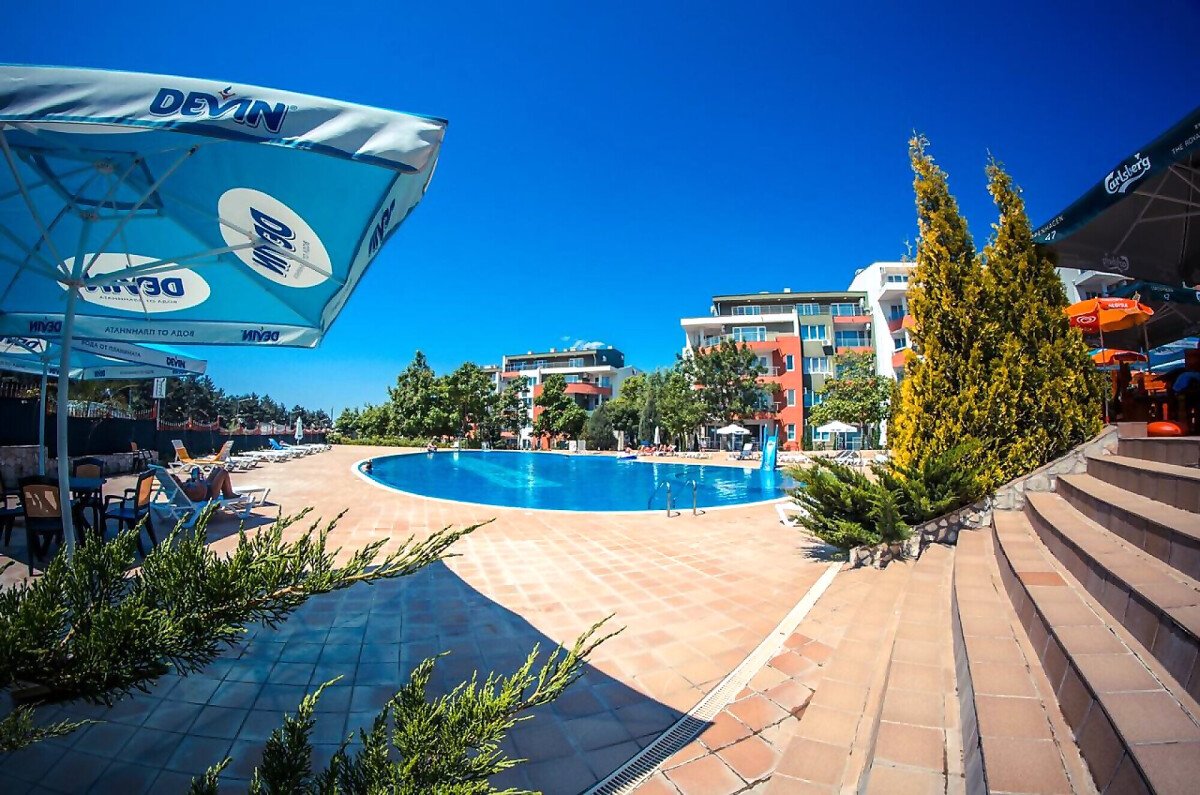 Апартаментът е двуспален и обзаведен и разполага с изглед към басейна и двора на комплекса.