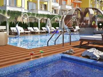 Комплексът се намира само на 450 от плажа на Слънчев бряг.
