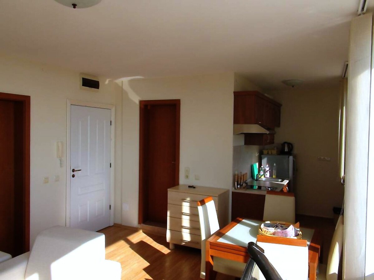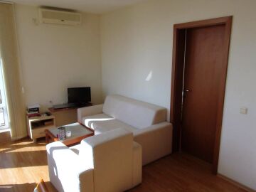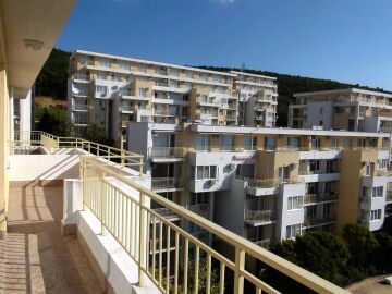 Апартаментът е едноспален и уютно обзаведен, с жилищна площ 73.00 кв. м, а гледката от голямата тераса на жилището е към морето, планината и двора на комплекса.
