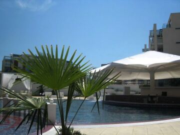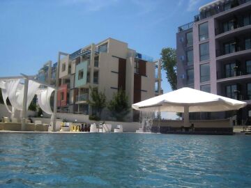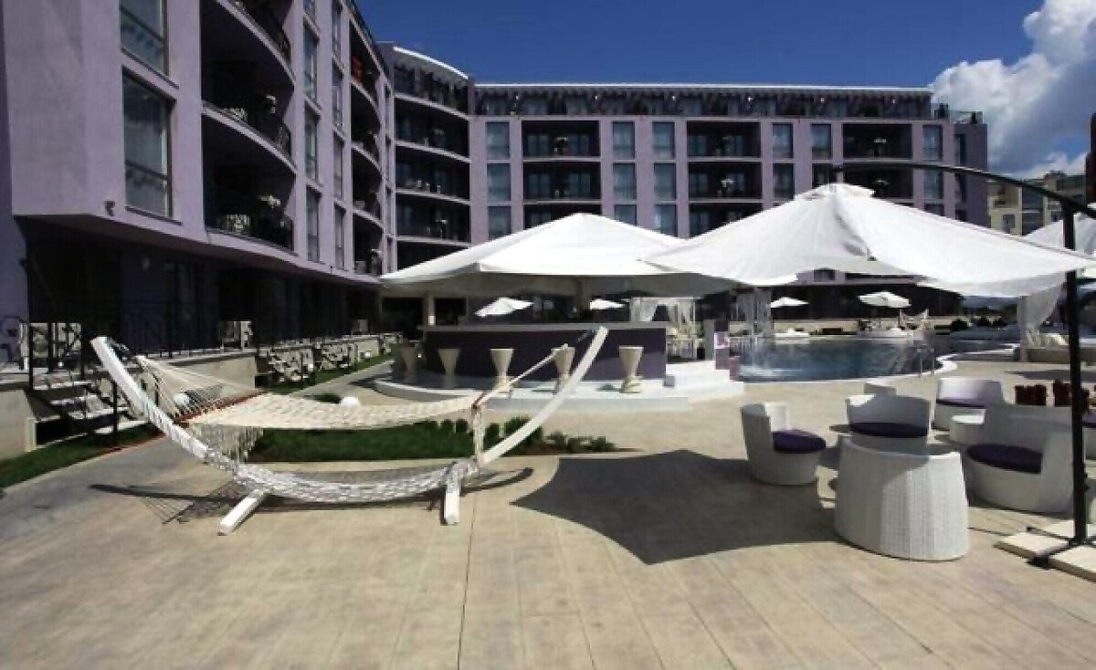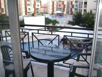Апартаментът е с площ 36 кв.м. и е напълно обзаведен и готов за нанасяне. Жилището е чисто и удобно. Има отделна зона за спане, където има голямо двойно легло, обособен кухненски бокс, мека мебел, баня с тоалетна и чудесна тераса с изглед към басейна на комплекса.
