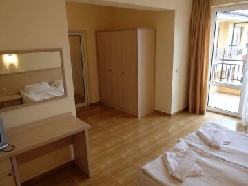 Комплексът се намира на десет минути пеш от плажа и центъра на града, а летището в град Бургас е на 36 км.