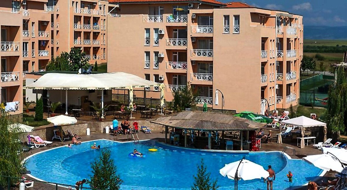 Комплексът на територията си разполага с пет големи басейна с място за деца, красива озеленена градина, голям тенис корт и футболно игрище, детска площадка и паркинг.