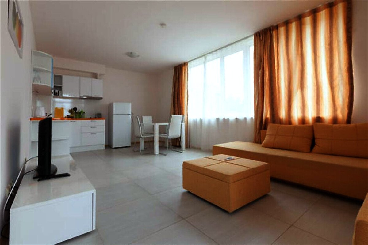 Апартаментът е разположен на 2 етаж, с гледка към басейна.