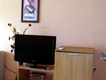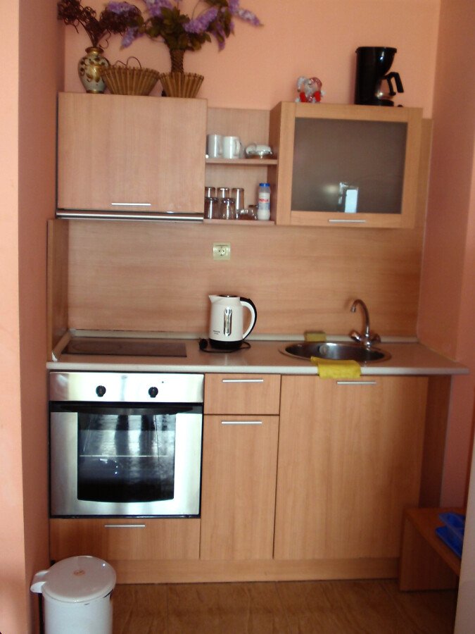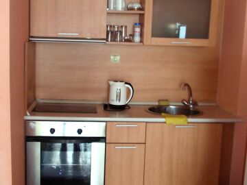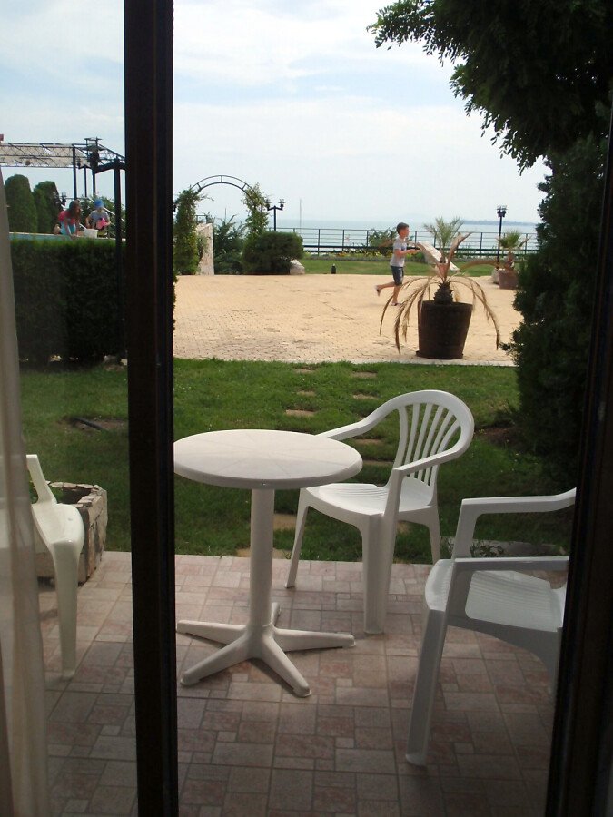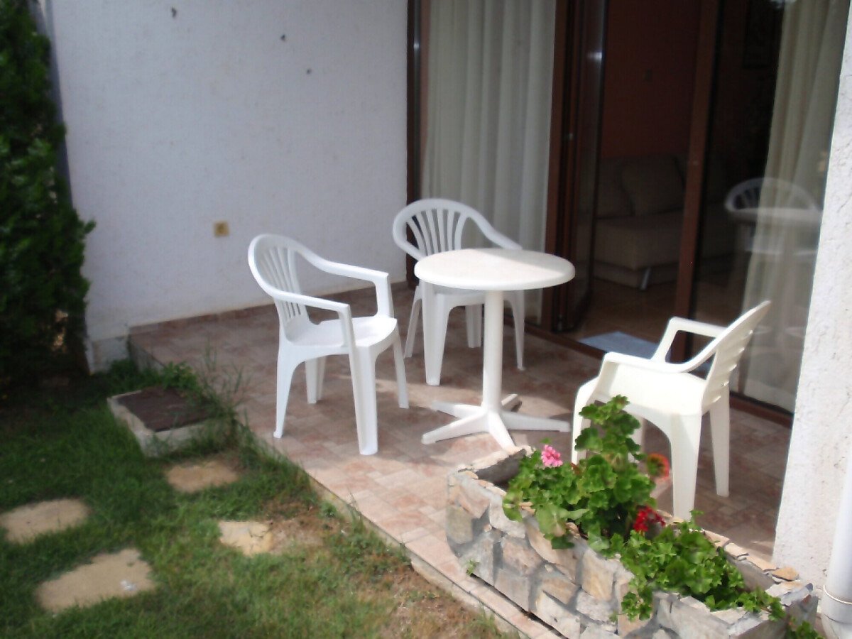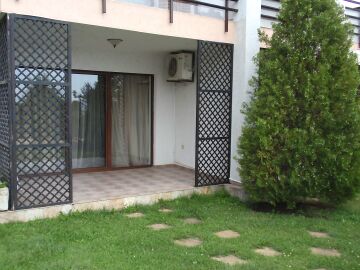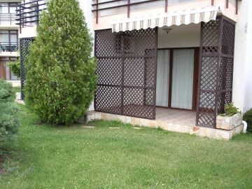 Апартаментът се намира на партерен етаж и очарова с красива тераса и достъп до градината, много е удобен за почивка с деца.
