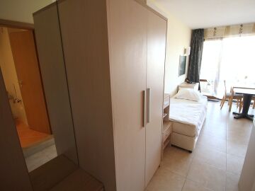 БГ ПРОПЪРТИ ИНВЕСТ предлага на Вашето внимание студио в комплекс „Ривър Парк“ в тихата и по-спокойна част на популярния курорт Слънчев бряг.