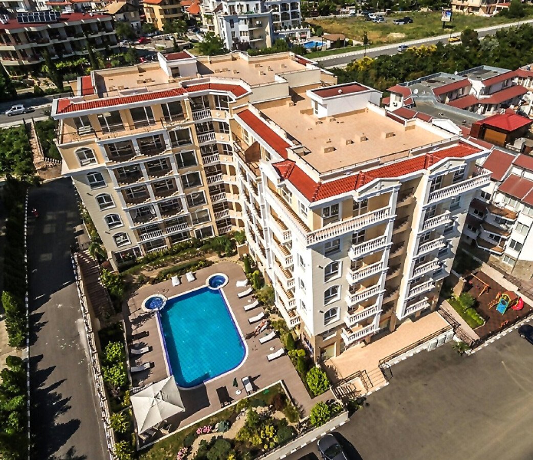 Комплексът се състои от две сгради, с по седем етажа и има архитектура в класически стил, а местоположението му до плажа - 160 м - и спрямо останалите летни курортни градове Слънчев бряг и Несебър го прави лесно достъпен с градски транспорт или автомобил.