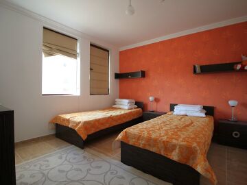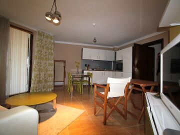 Апартаментът е стилно обзаведен, състои се от дневна с кухня, две спални, две бани и две тераси, една от които с прекрасна морска гледка.