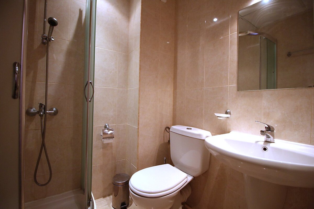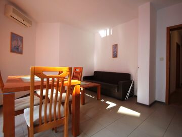 Апартаментът е изключително просторен – площта му е 90 кв.м и се състои от коридор, дневна с кухня и трапезария, две спални, две тераси, баня с тоалетна.