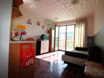 Площта на студиото е 34 кв.м., с удобно разпределение и стилен интериор.