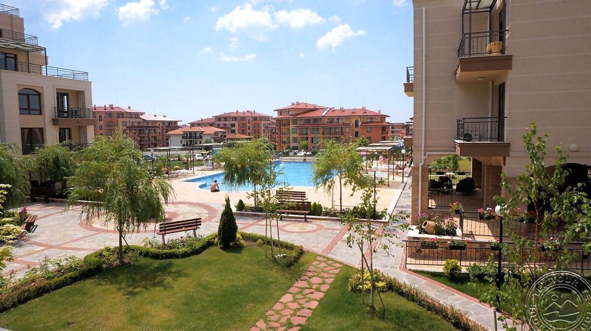 Комплексът е разположен в тихата и спокойна част на курорта, само на 200 м от морския бряг. Територията на комплекса е богато озеленена и добре поддържана. За удобство на живущите в комплекса е изграден страхотен плувен басейн.