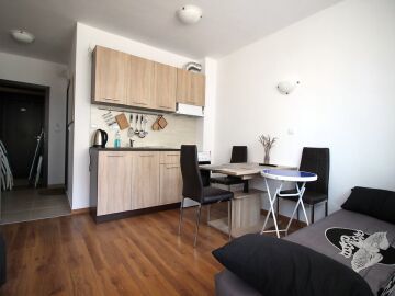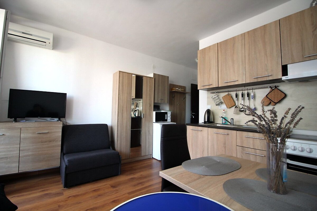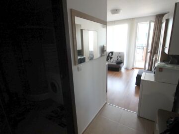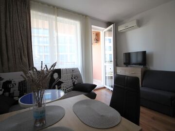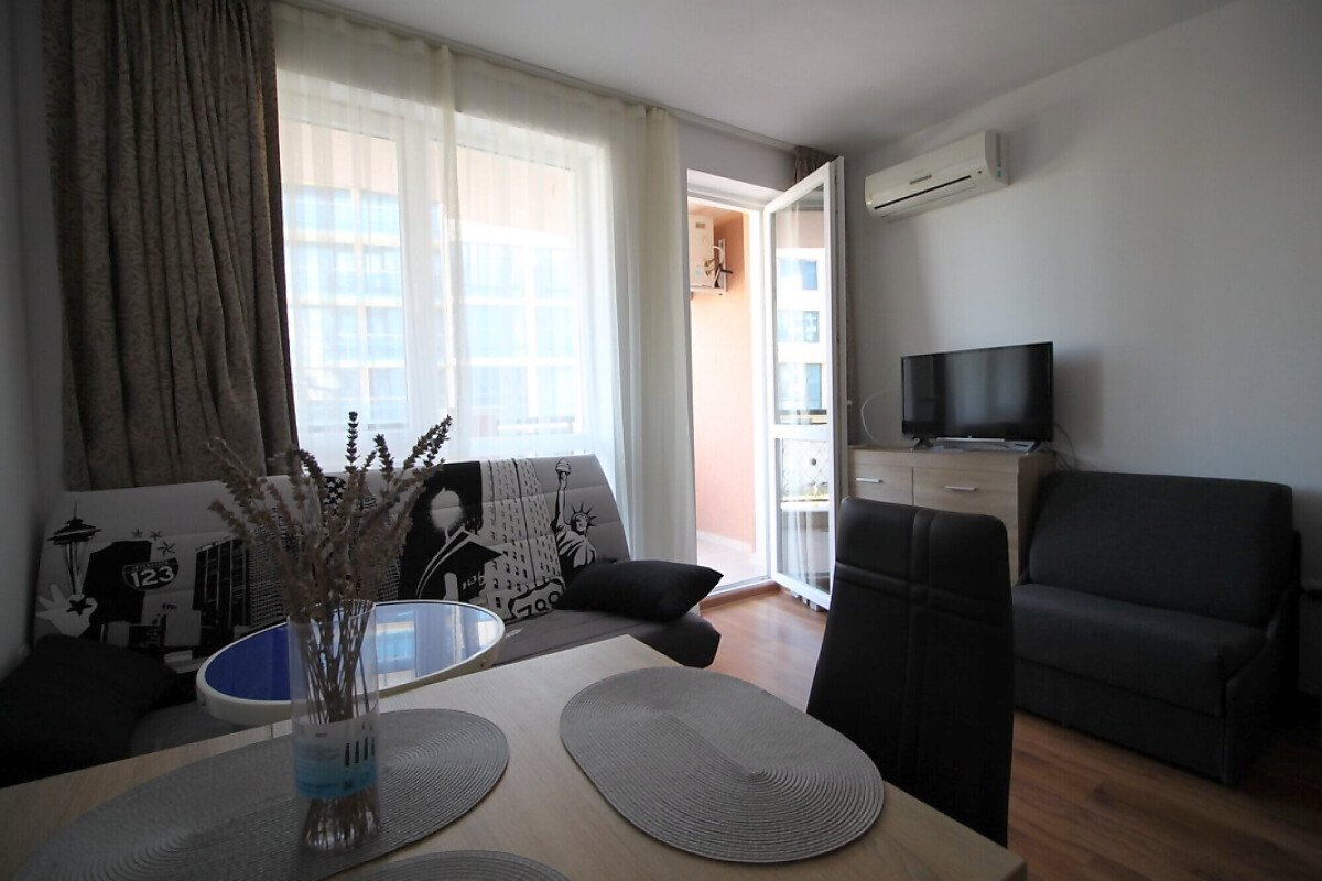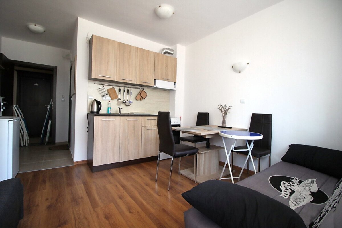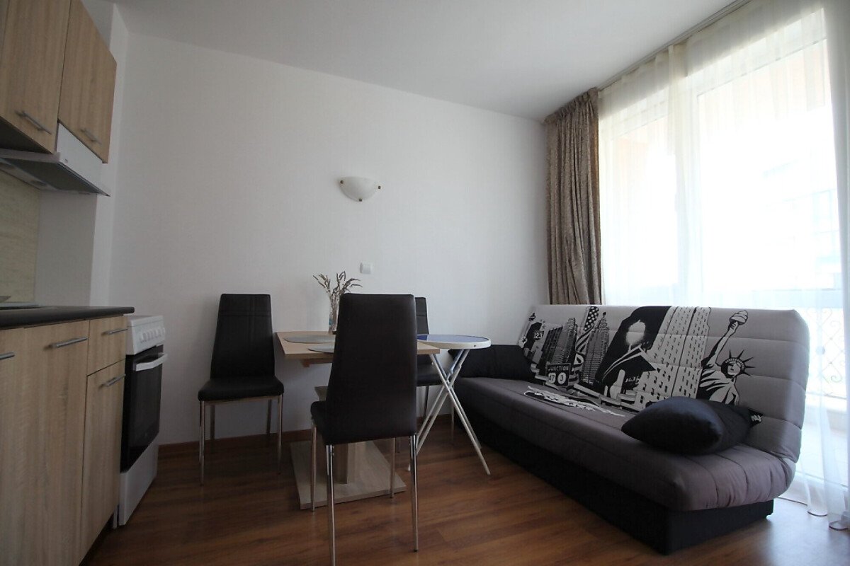 Студиото се продава обзаведено и оборудвано с уреди – във вид готов за настаняване или директно отдаване под наем. Районът е предпочитан за лятна почивка и този апартамент има потенциал да Ви носи добри доходи.