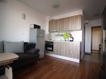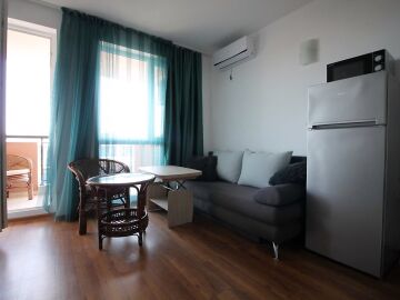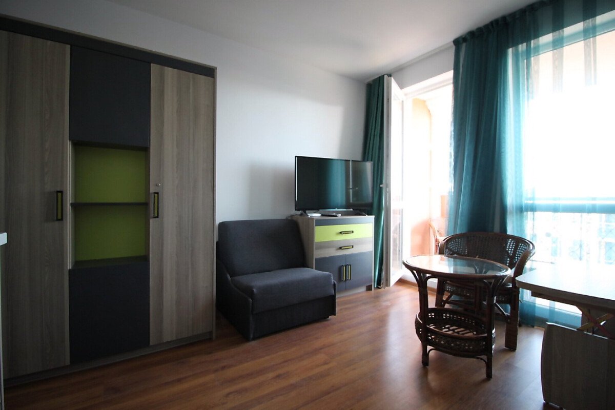 Студиото се продава обзаведено и оборудвано с уреди – във вид готов за настаняване или директно отдаване под наем. Районът е предпочитан за лятна почивка и този апартамент има потенциал да Ви носи добри доходи.