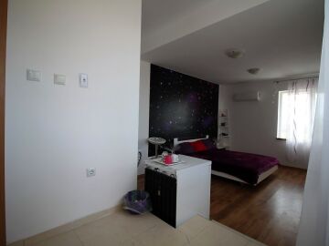 Предлага се напълно обзаведено и оборудвано – състои се от просторна стая и баня с тоалетна, няма тераса.
