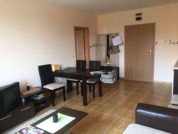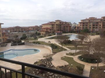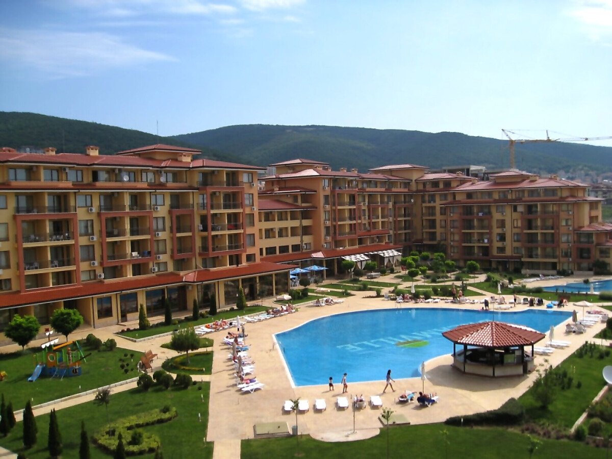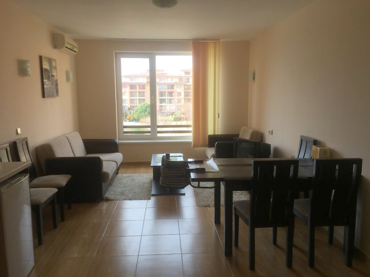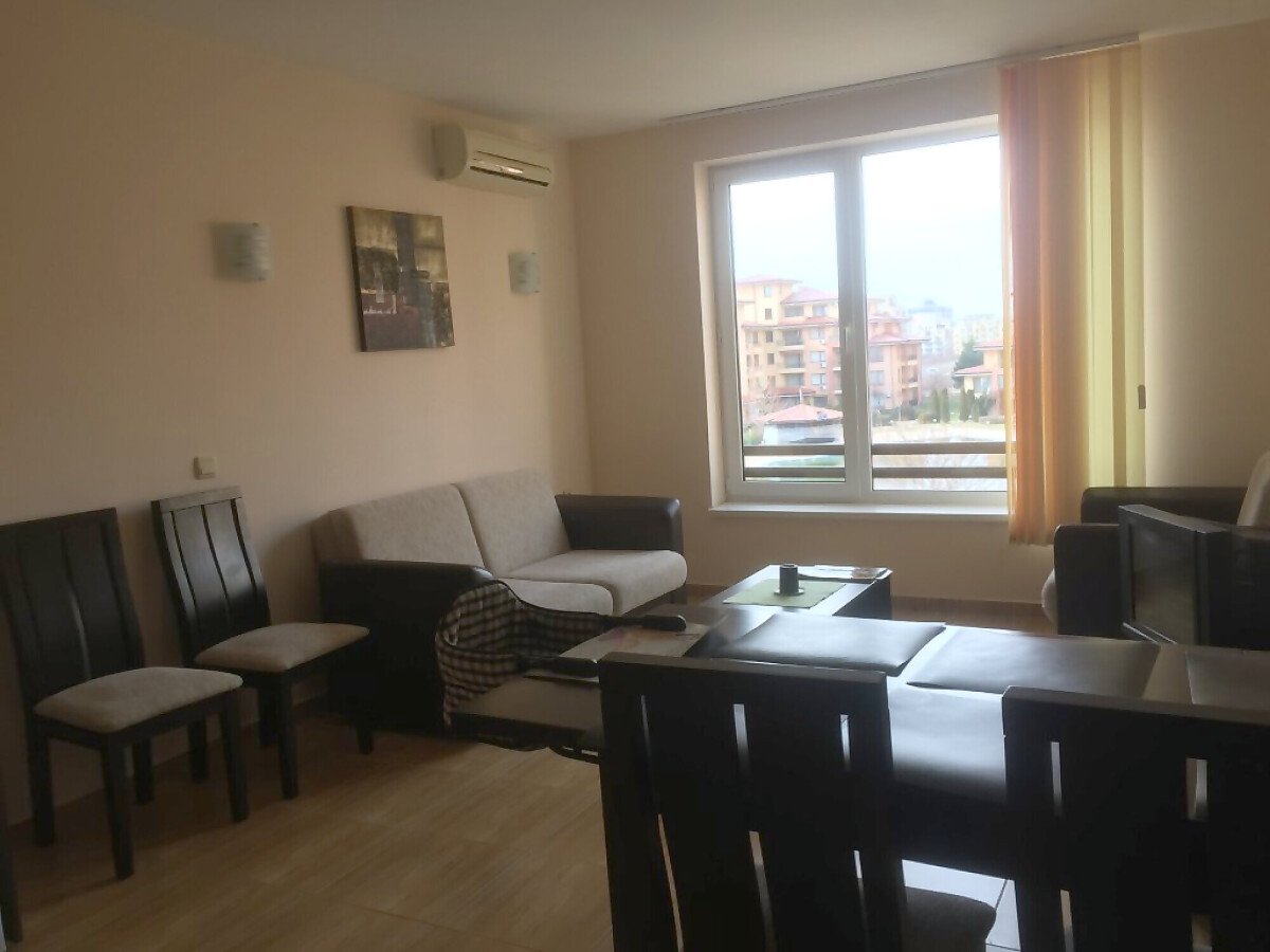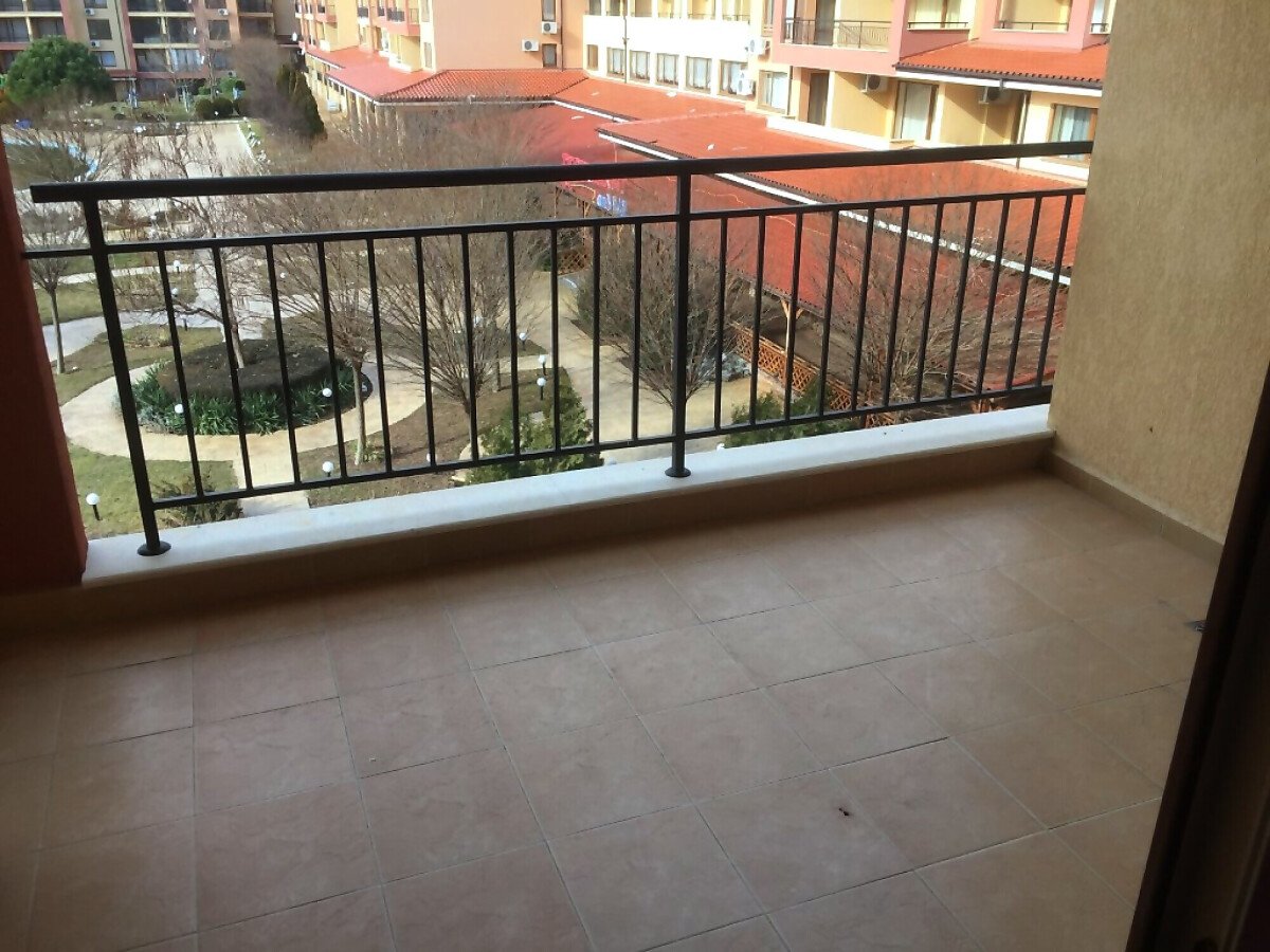 Апартаментът е разположен на 3-ти етаж и неговата площ е 60 кв.м. Терасата е с изглед към басейна.
