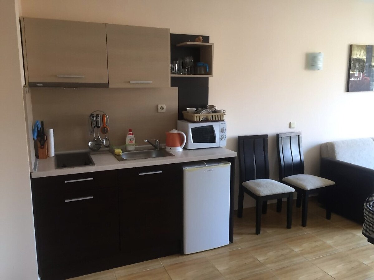 Имотът е ремонтиран и обзаведен с нови мебели и уреди. Разполага с кухненски бокс, кабелна телевизия, климатик.
