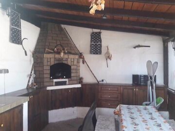 В задната част на двора има обособена зона с барбекю, мебели и електроуреди.