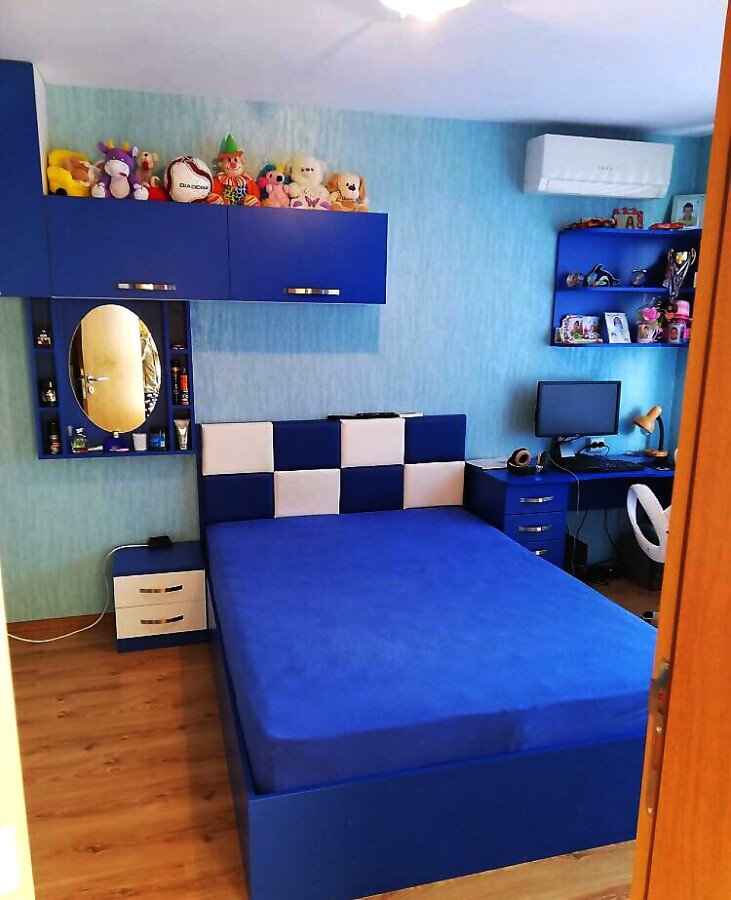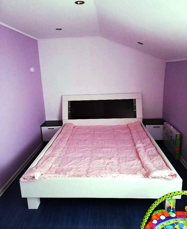 Състои се от дневна с кухня, две спални, две бани с тоалетни, една детска стая, стая за спорт, перално помещение, голямо помещение в подпокривното пространство.