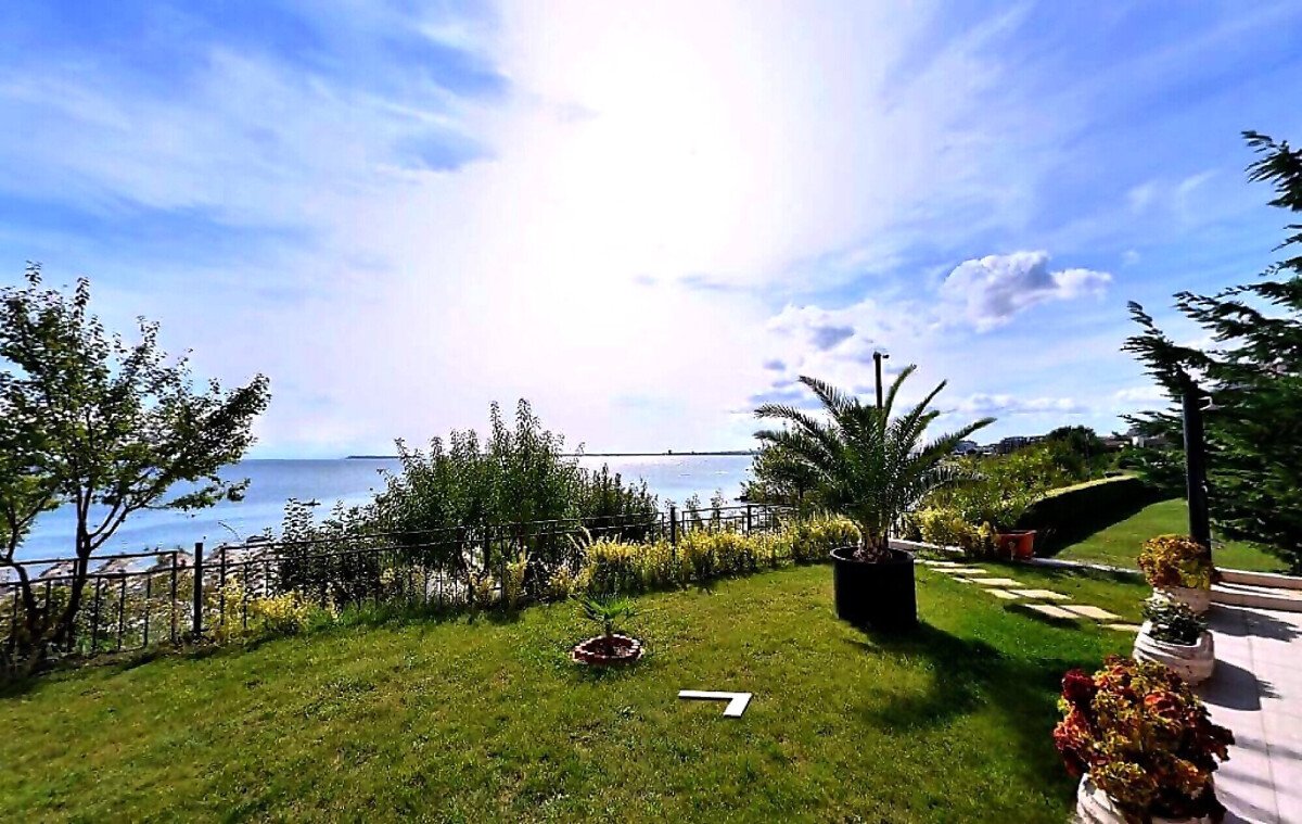 Архитектурата му е модерна в средиземноморски стил, а гледката от градината му е към красивият град Несебър.