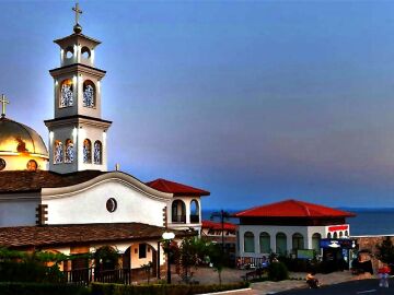 Близо до яхтеното пристанище, сред поддържани зелени площи е построена красива православна църква.