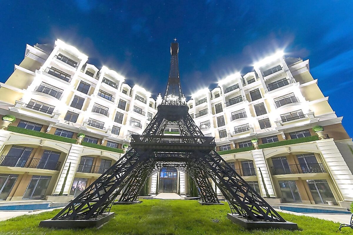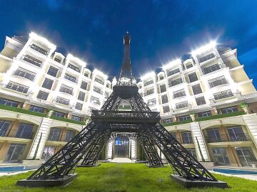 Насред озеленената градина на комплекса има малки алеи с палми, където можете да се разхождате в топлите дни, а още повече приказност придава умаленото копие на Айфеловата кула.