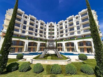 “Романс Париж” е един уникален, по своята архитектура и дизайн комплекс, който се намира в курортният град Свети Влас, на 250 м от плажа.