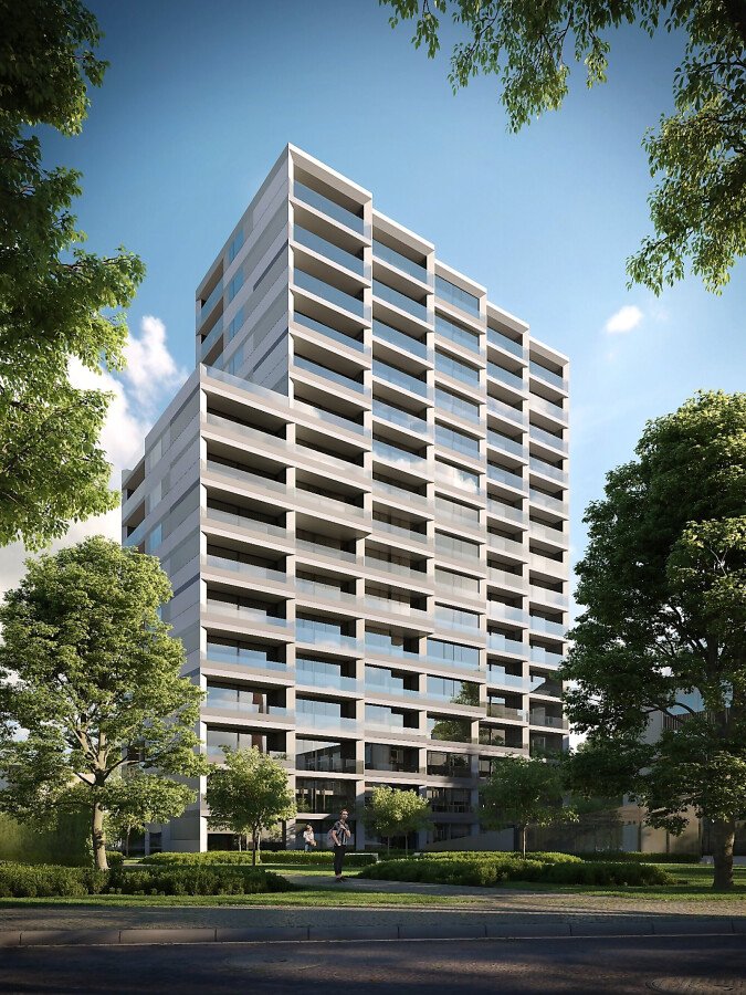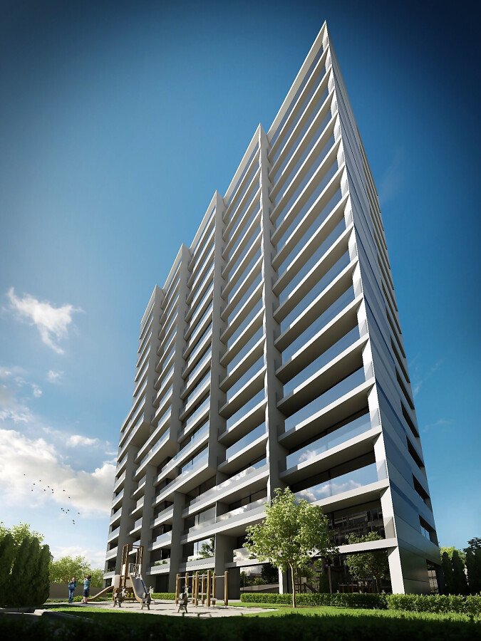На първият етаж на сградата са разположени офис площи, а останалите 15 етажа предлагат двустайни, тристайни, четиристайни и петстайни апартаменти с функционално разпределение.