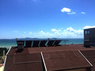 Всички стаи са с южно изложение и красиви френски прозорци, от които се разкрива прекрасна гледка към морето.