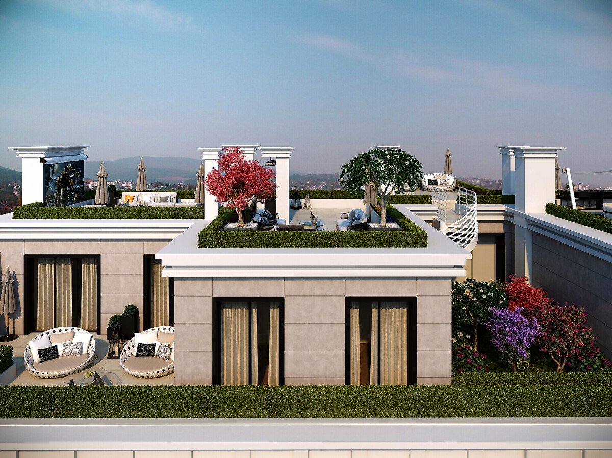 Покривът е превърнат в един уникален оазис, своеобразна градина под небето, където живущите могат да прекарват свободното си време и да се наслаждават на страхотната гледка.