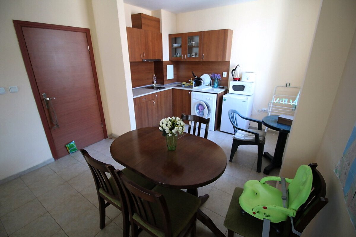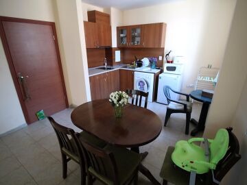 Апартаментът се предлагат напълно обзаведен и оборудван с необходимите елктроуреди, можете да се нанесете веднага без да е необходимо да мислите за ремонти, мебели и обзавеждане.