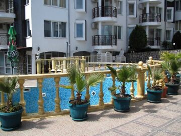 Комплексът разполага с асансьор, басейн, слънчева панорамна тераса, охрана, магазин, бар, зелени площи и др.