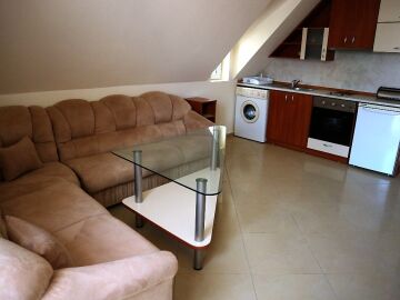 Жилището е разположено на четвърти етаж (последен) и се състои от дневна с кухненски бокс, спалня, баня с тоалетна и голяма тераса.