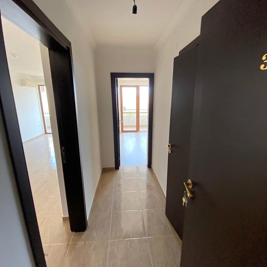 Апартаментът е със следното разпределение: хол с кухня и трапезария, две спални (едната е със собствена баня и дрежник), баня с тоалетна и разкошна голяма тераса с изглед към морето и планината.