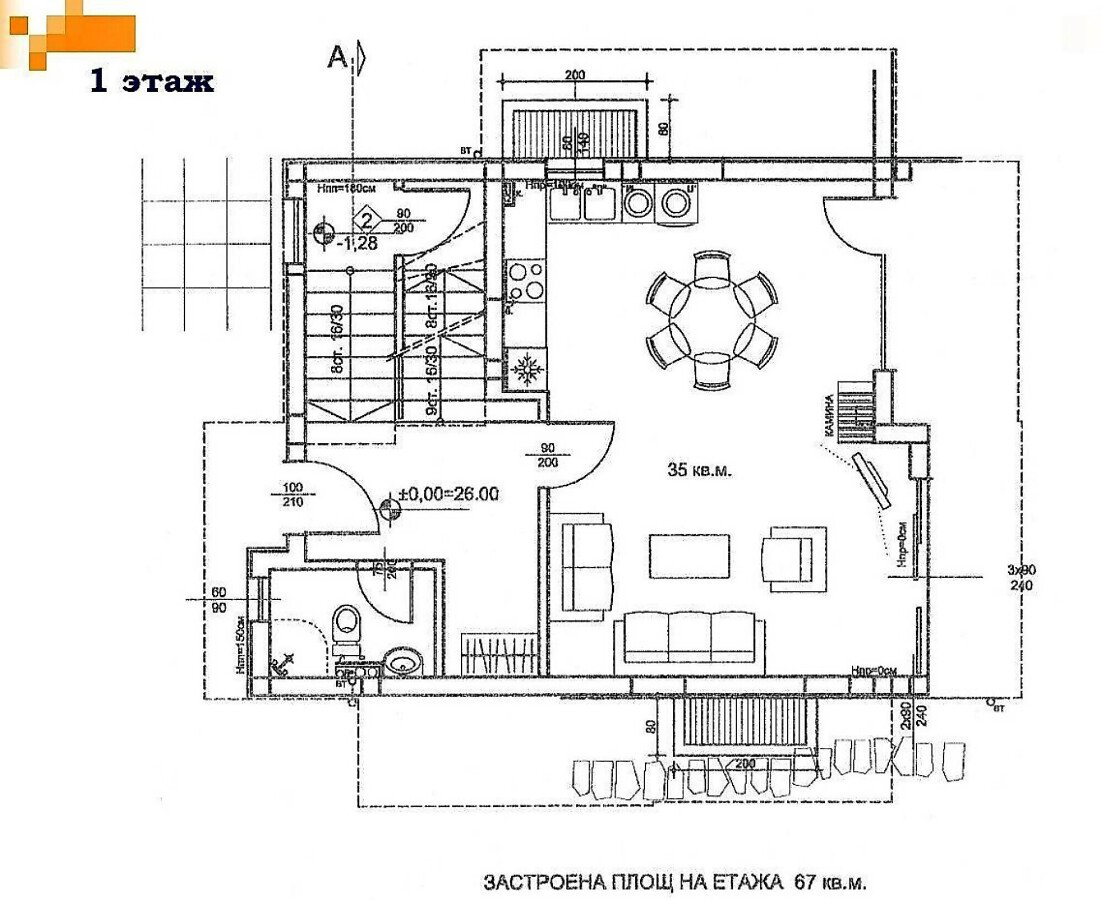 Вилата, която предлагаме за продажба е с площ 268 кв.м – светла и просторна и се състои от антре, голяма дневна с кухня и камина, три спални, три бани с тоалетни и тераси с невероятни гледки.