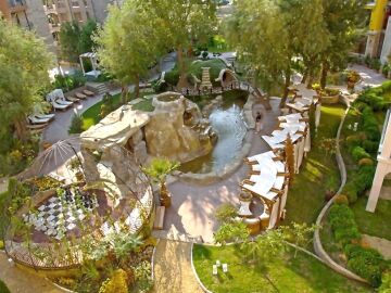 “Хармони Суитс 3 Джунгла” предлага лукс и комфорт, а удобствата и услугите, от които с предимство е разкошната му градина, където има екзотични растения, зони за релакс, голям шахматен амфитеатър, изкуствено проектирана рекичка с истински живи рибки, красив водопад, динозавър и пещера - биха направили почивката Ви още по - пълноценна и можете да се възползвате от тях, като гост или собственик на комплекса :