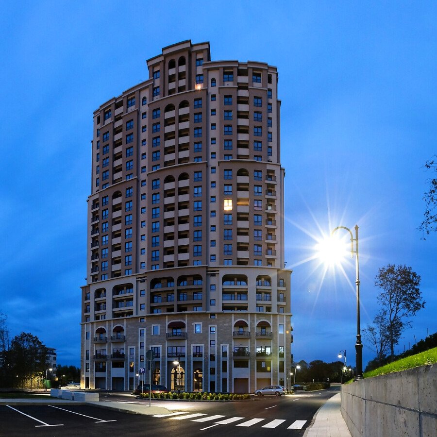 Комплексът е на 22 етажа, има 179 апартамента и множество удобства, които да предложи на гостите си :