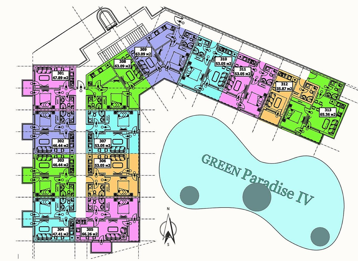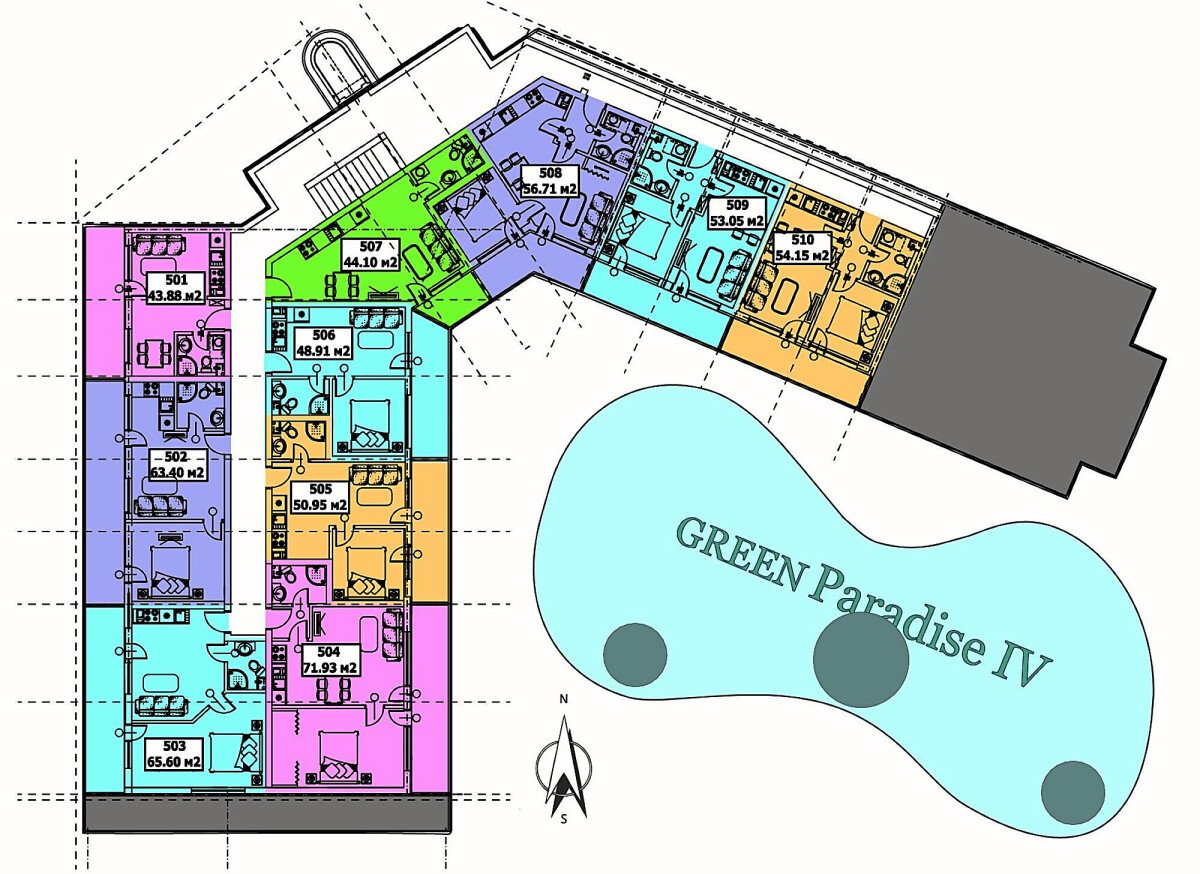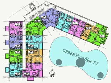 “Грийн Парадайз IV ” е на 5 етажа, а планът на апартаментите е направен, така че собствениците им да плащат по- малко за общи части - например като имат по- малки тераси.