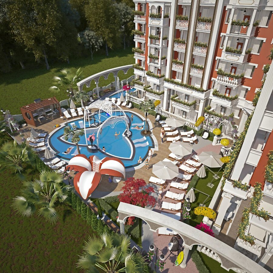Комплексът разполага със 105 апартамента - 68 от тях са едноспални, 17 двуспални и 20 студиа, които се продават в състояние “под ключ”, а по желание на купувача на жилище, то може да бъде обзаведено с мебели в стила на комплекса.