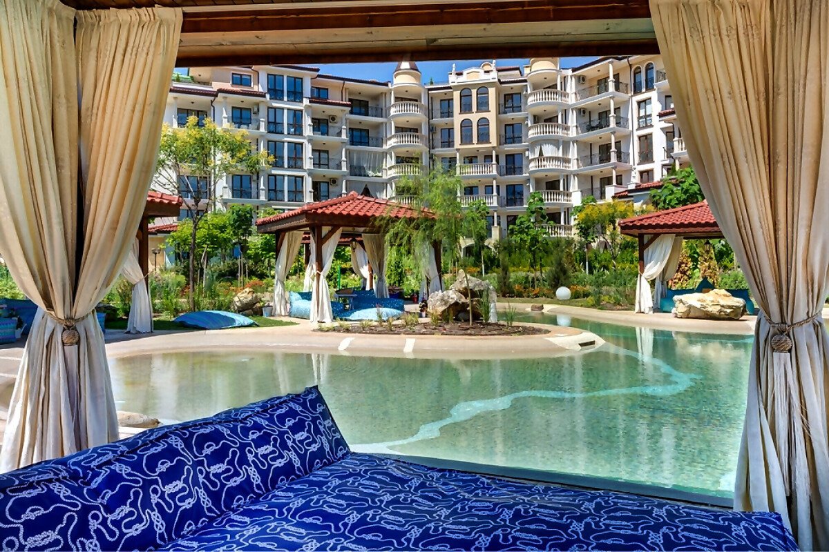 Предлагаме на Вашето внимание страхотно студио в комплекс “Посейдон” - резиденцията на Боговете, разположена между Равда и Несебър.
