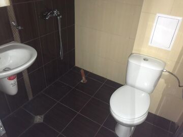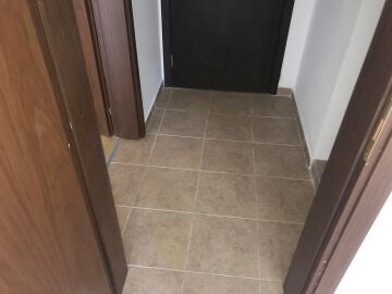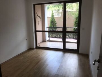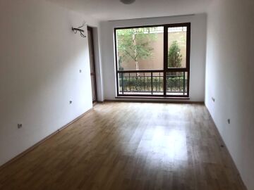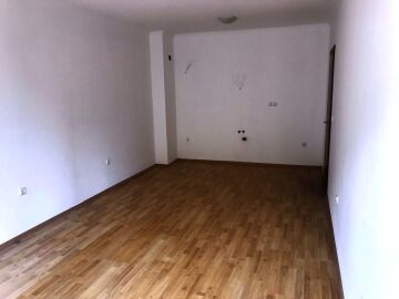 Апартаментът е без мебели, подът е от паркет и теракот.