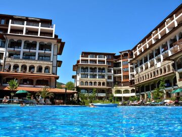 Комплексът представлява две големи сгради, а между тях има два басейна - за деца и възрастни и красива градина, която е озеленена и добре поддържана.