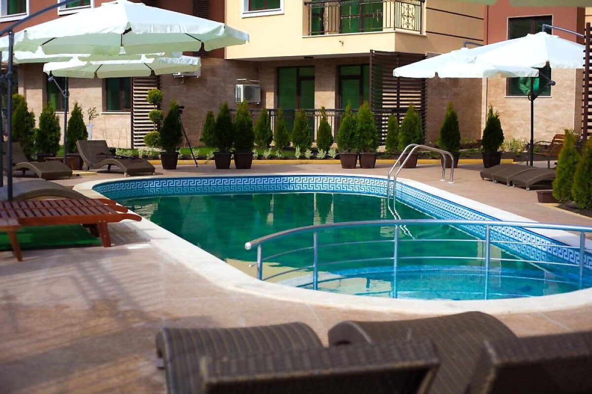 Комплексът представлява две сгради с добре поддържана и озеленена градина и басейн, с обособена детска част.