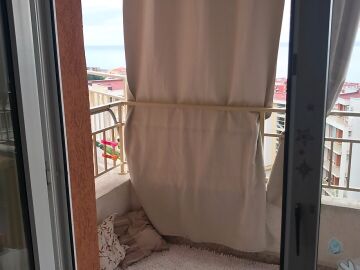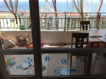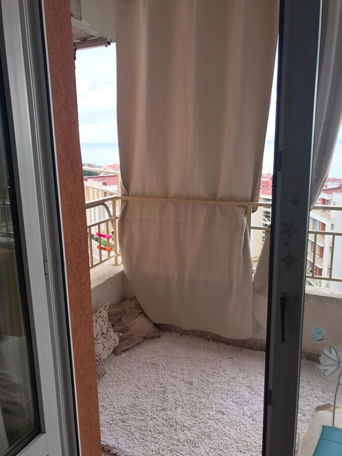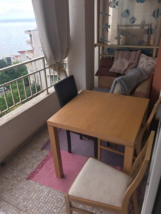 Апартаментът има една спалня, кухня, с голям хол, баня с тоалетна и две тераси с изглед към морето.