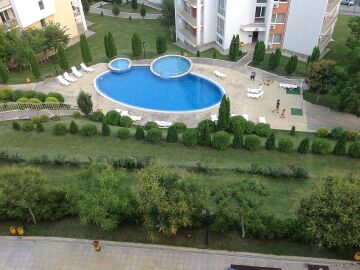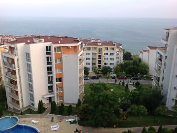 Почти всички имоти, които се предлагат за продажба в този масивен комплекс - студиа, едноспални и двуспални апартаменти - са обзаведени.