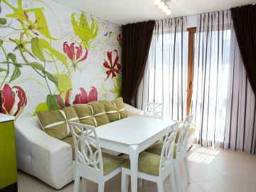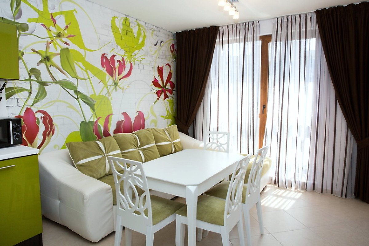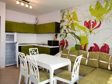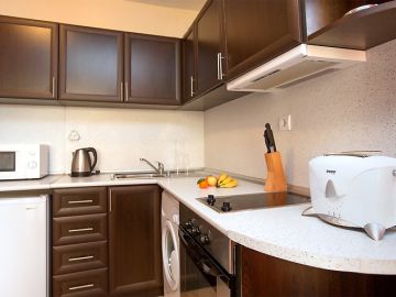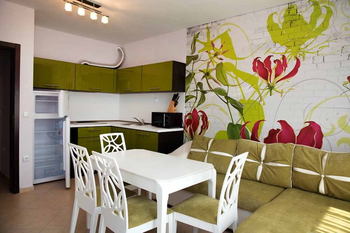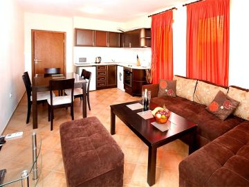 В комплекса са обявени студиа, едноспални и двуспални апартаменти, имат кухненска зона с хол и трапезария и баня с тоалетна, които са напълно оборудвани и обзаведени, както и просторни тераси.