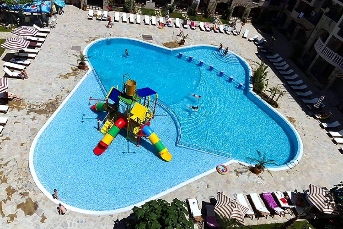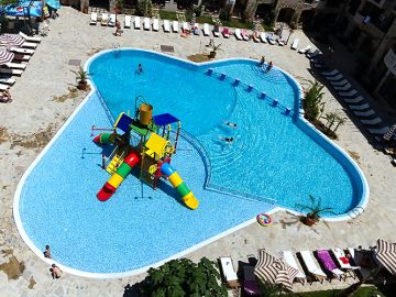 На територията си комплексът има и басейни, изкуствени езерца с патета, водни лилии и рибки, два мини - аквапарка, детски площадки, ресторант с българска и италианска кухня, пекарна, барбекю, два СПА центъра с джакузи, сауна и парна баня, две фитнес зали и два масажни салона.
