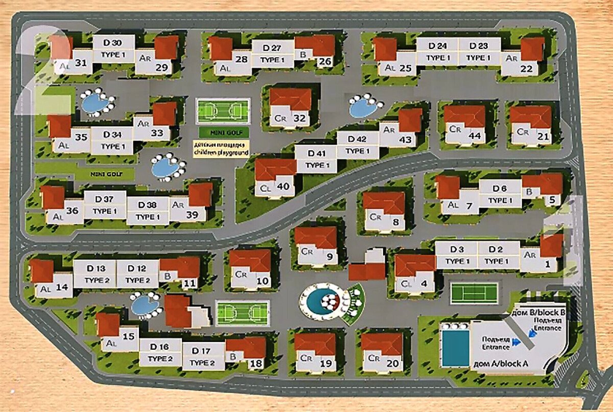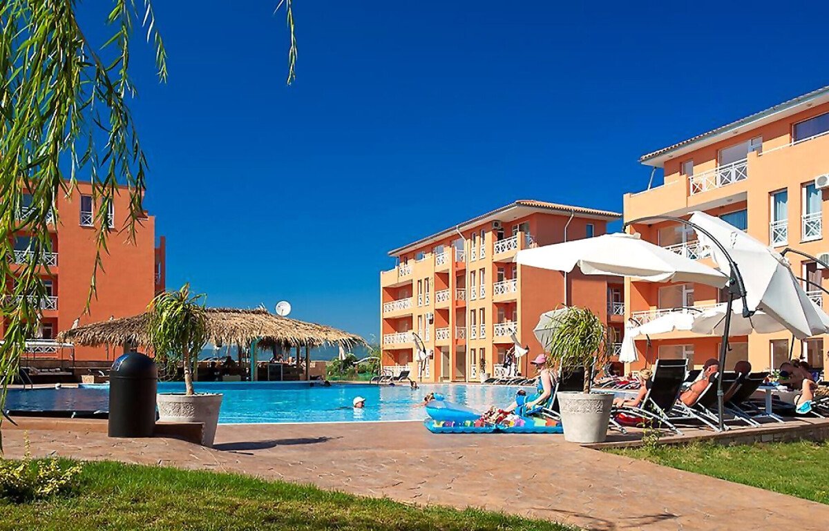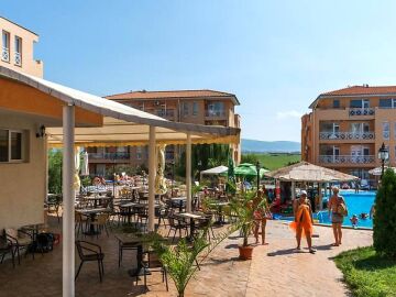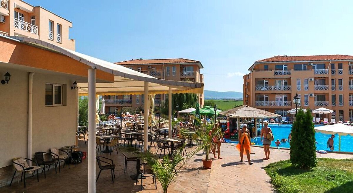 Комплексът на територията си разполага с пет големи басейна с място за деца, красива озеленена градина, голям тенис корт и футболно игрище, детска площадка и паркинг.
