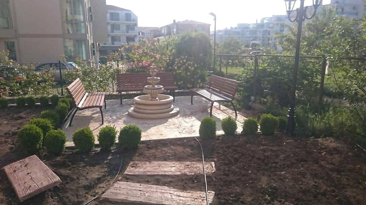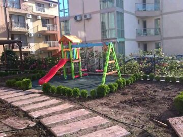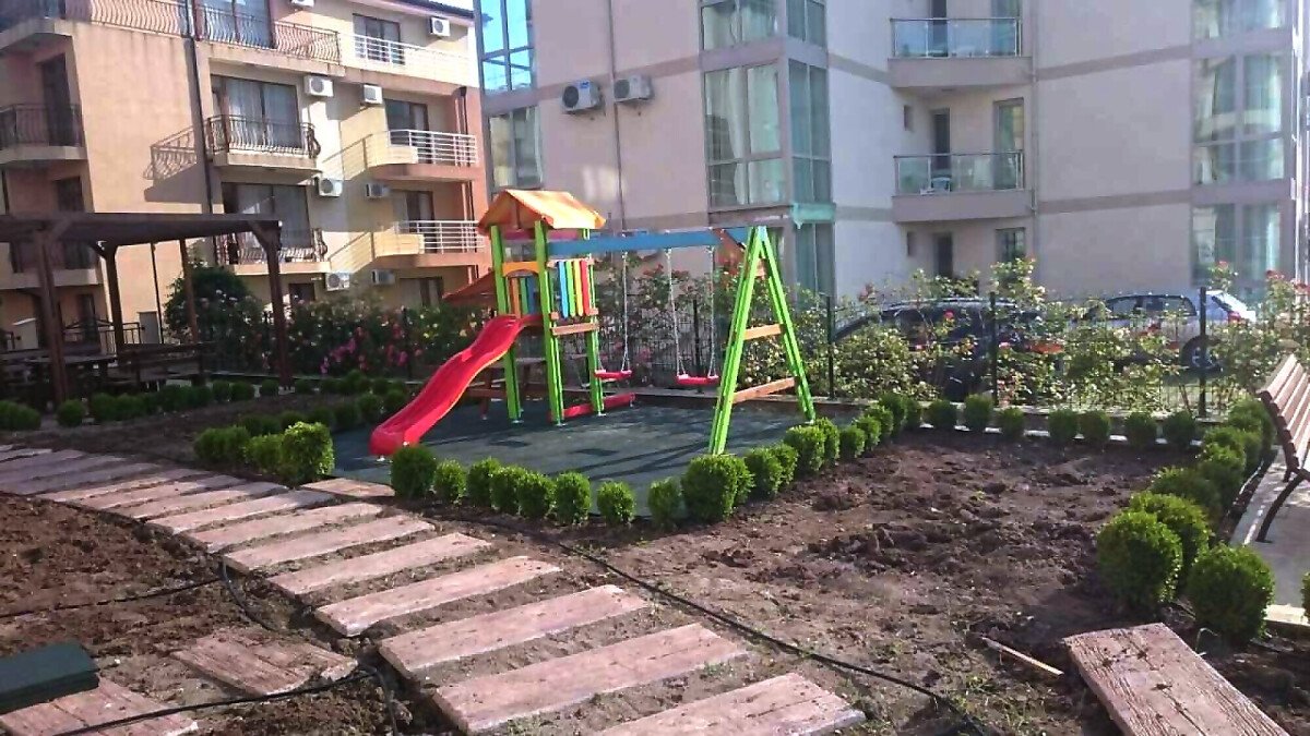 В комплекса има красива пленителна градина, където има детска площадка, за най - малките жители на комплекса.