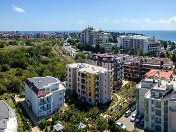 Комплексът е разположен само на 300 м от морето - с чистата си вода и златист пясък.