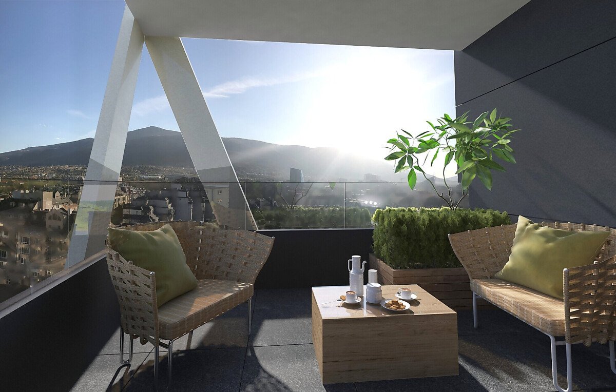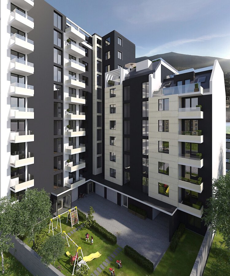 Първият етаж на сградата е проектиран за надземни гаражи, а останалите десет етажа ще бъдат с 83 апартамента, като по - голямата част от тях ще имат изключителни гледки към Витоша.
